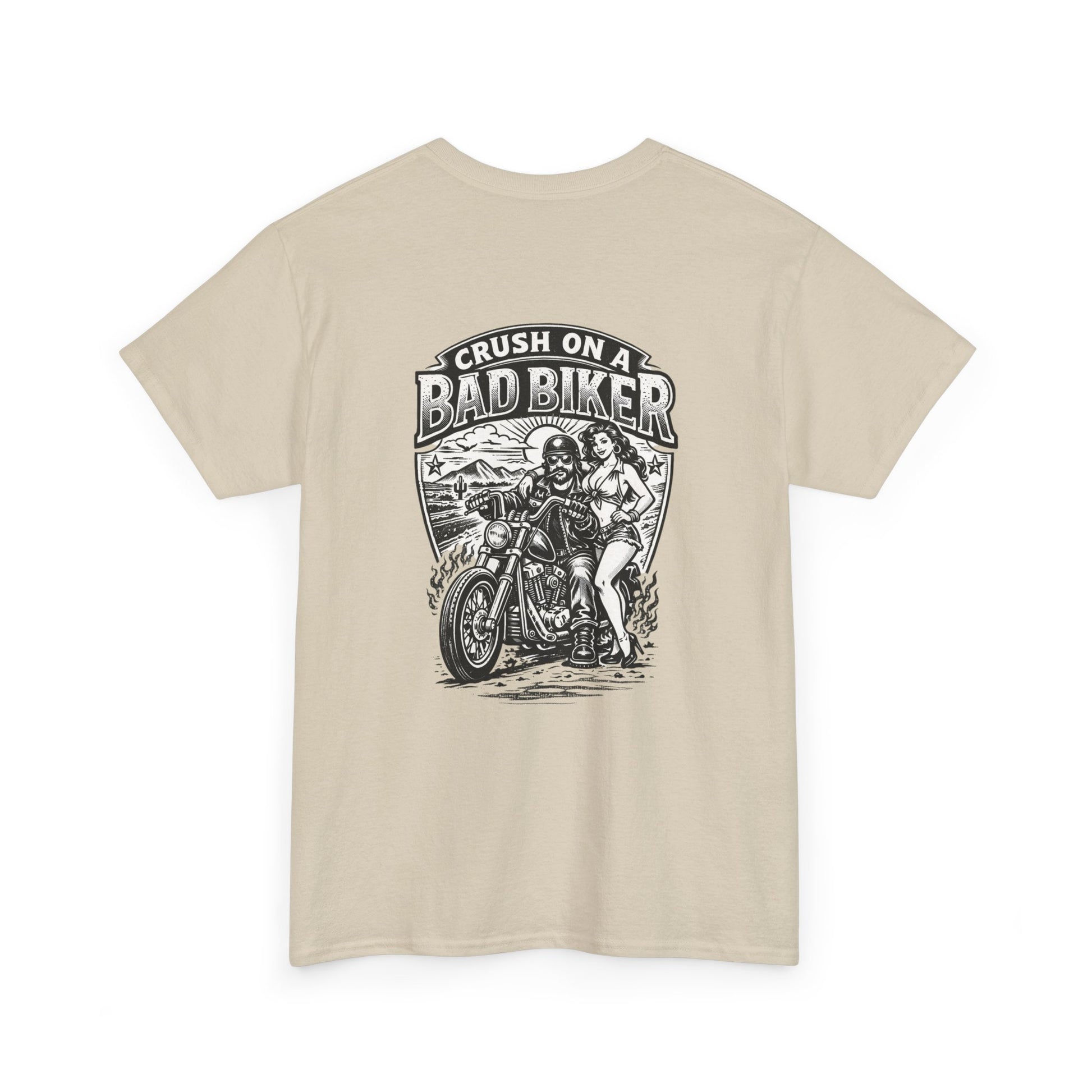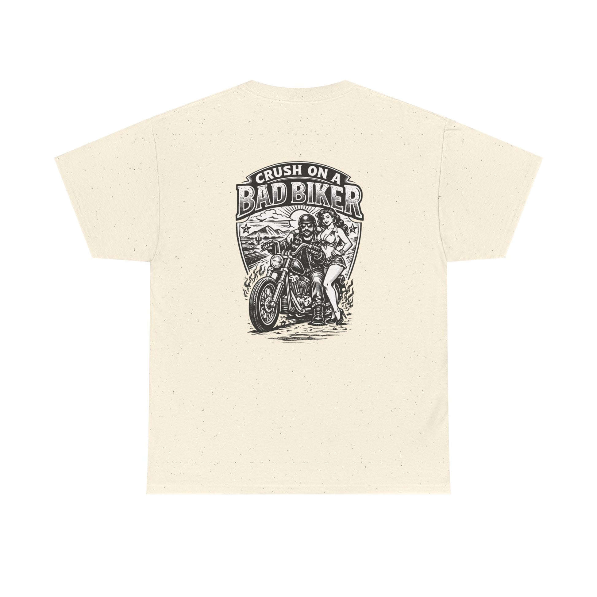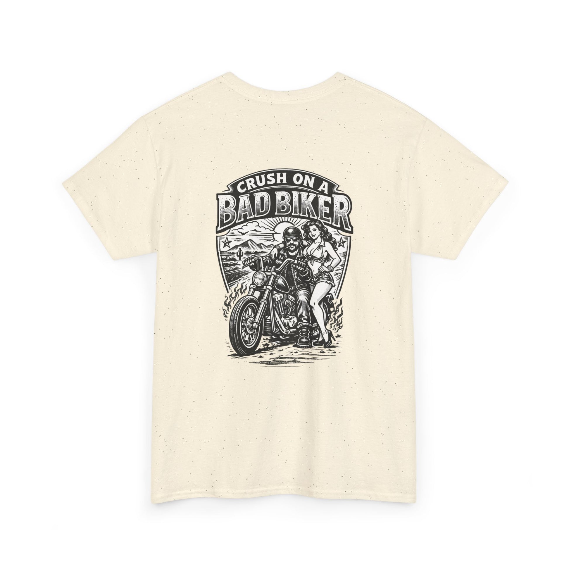 Worn by people who love open roads and loud engines. It feels lived-in from the first wear — sturdy enough for long trips, breathable enough for summer rallies. The shirt’s weight and tubular knit give it structure while the garment-dye adds that broken-in, sun-faded look riders reach for when they want gear that tells a story. Whether you’re heading out to a meet-up, a weekend ride, or hanging out at a backyard bonfire, this tee blends classic biker attitude with everyday comfort.